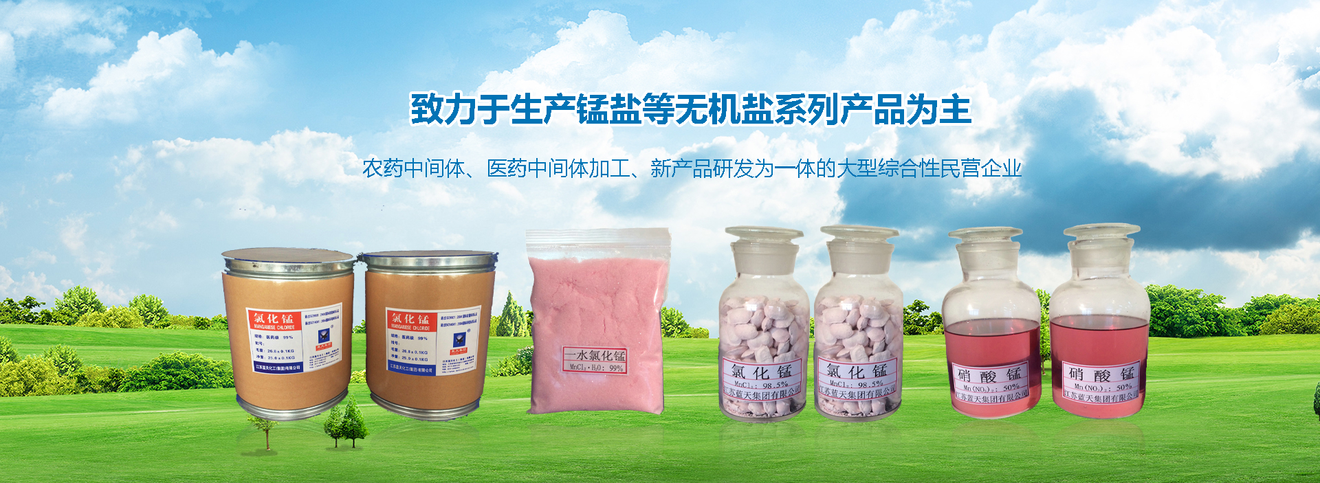 淮安市藍天化工有限公司,是以生產錳鹽等無機鹽系列產品為主。農藥中間體、醫藥中間體加工、新產品研發為一體的大型綜合性民營企業。公司業務遍及海內外數十個城市與地區,現擁有各類資產2億多元,生產經營面積200余畝,員工400多人。其中各類專業技術人員占1/3以上。并具有較強的技術研發和生產能力。現已初步形成一支高素質、敬業愛崗、廉潔高效的作戰團隊。